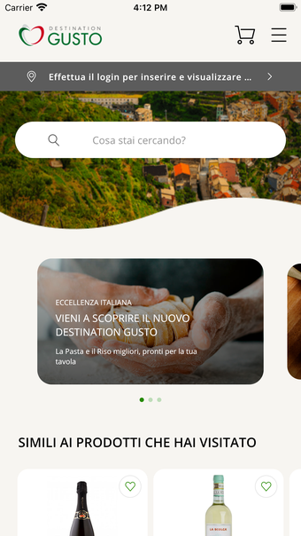 Destination Gusto 앱을 통해 사용자는 전형적인 지역 제품, 수상 경력을 가진 와인, 독특한 장인 생산자 및 이탈리아 셰프들의 독점 선택을 이용할 수 있습니다. 이 앱은 또한 플랫폼에서 직접 구매할 수 있는 재료로 독특한 요리를 단계별로 안내하는 레시피 카탈로그도 제공합니다.